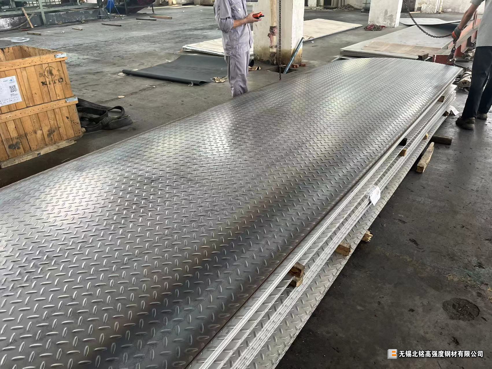 因客戶產(chǎn)品要求需要Q355ME花紋板,市面上花紋板現(xiàn)貨幾乎只有Q235B。經(jīng)多方了解。我司覺(jué)得用現(xiàn)貨Q355ME開平板發(fā)往加工廠壓花。試做后客戶對(duì)效果比較滿意。本次我司共加工Q355ME花紋板26噸。